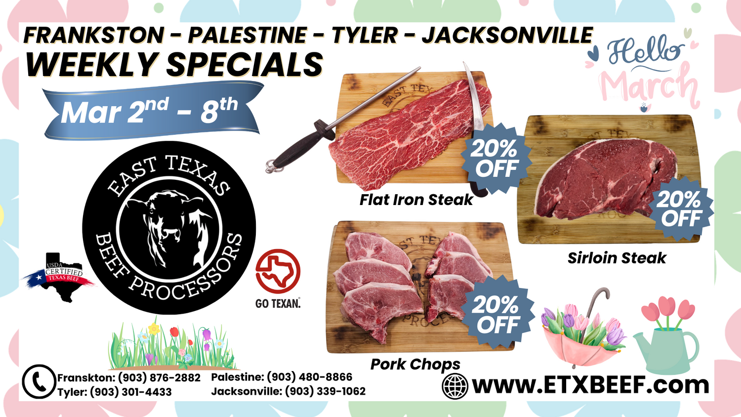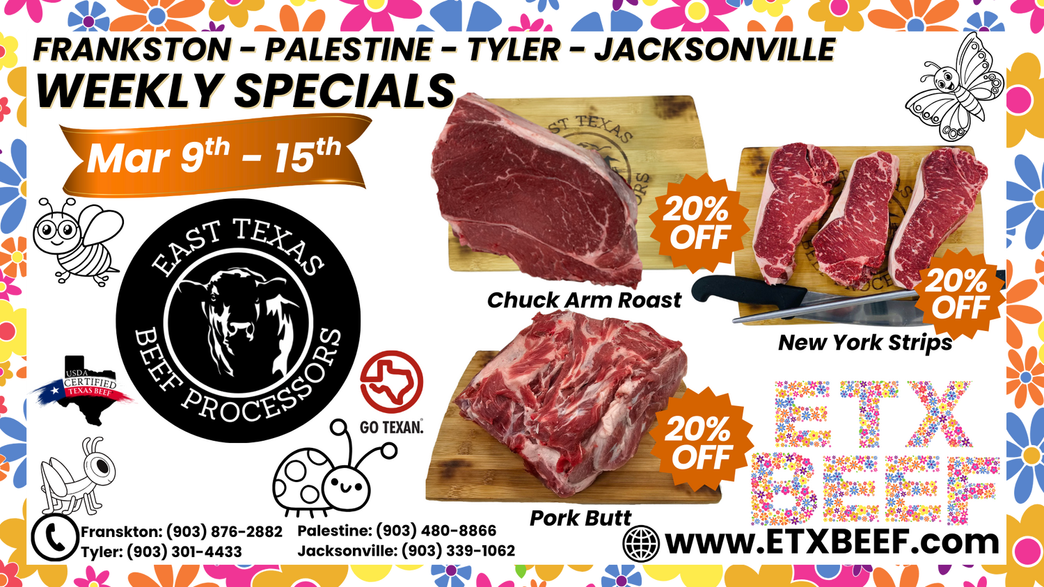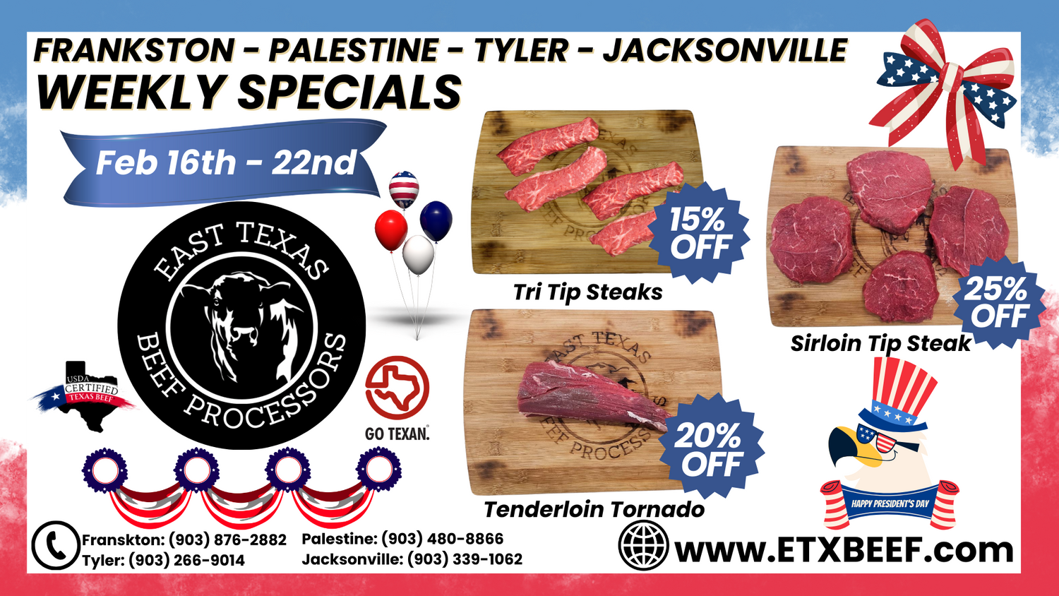 Fill your freezer or treat yourself to a nice dinner with our weekly special items! They go fast!