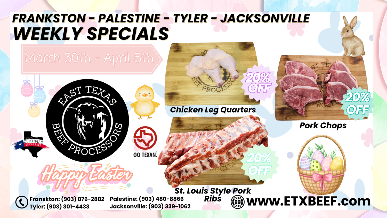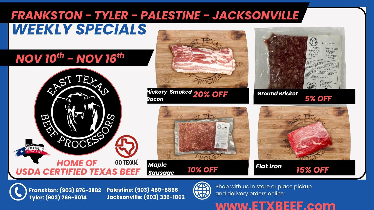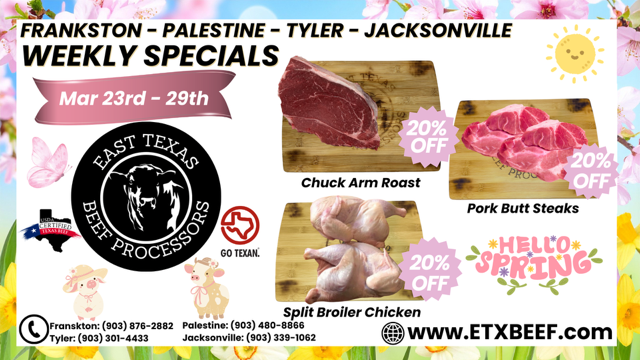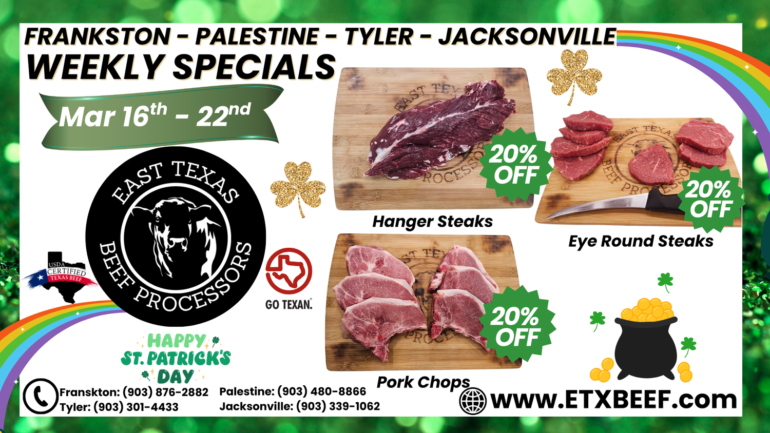Fill your freezer or treat yourself to a nice dinner with our weekly special items! They go fast!