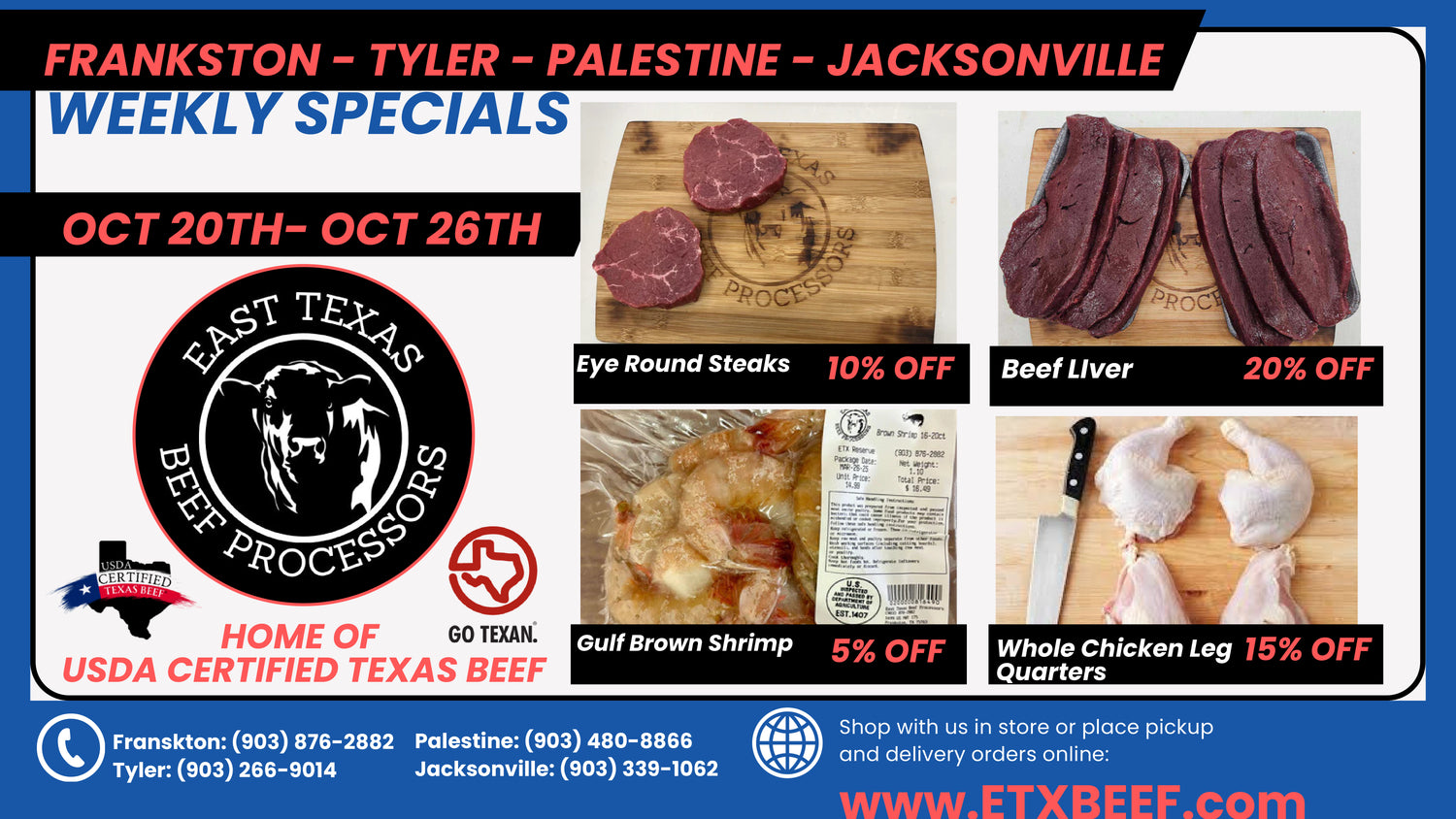 Fill your freezer or treat yourself to a nice dinner with our weekly special items! They go fast!
